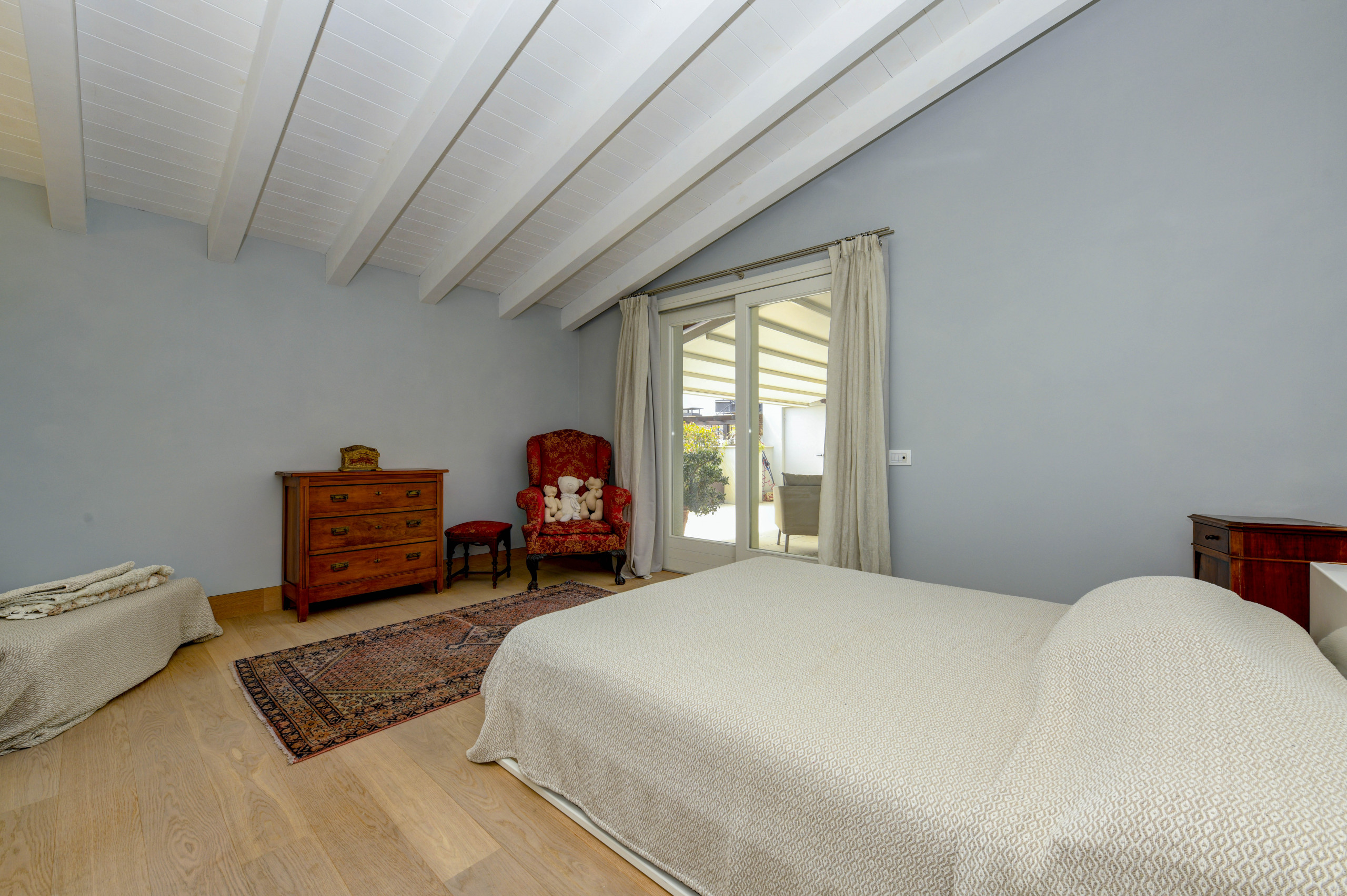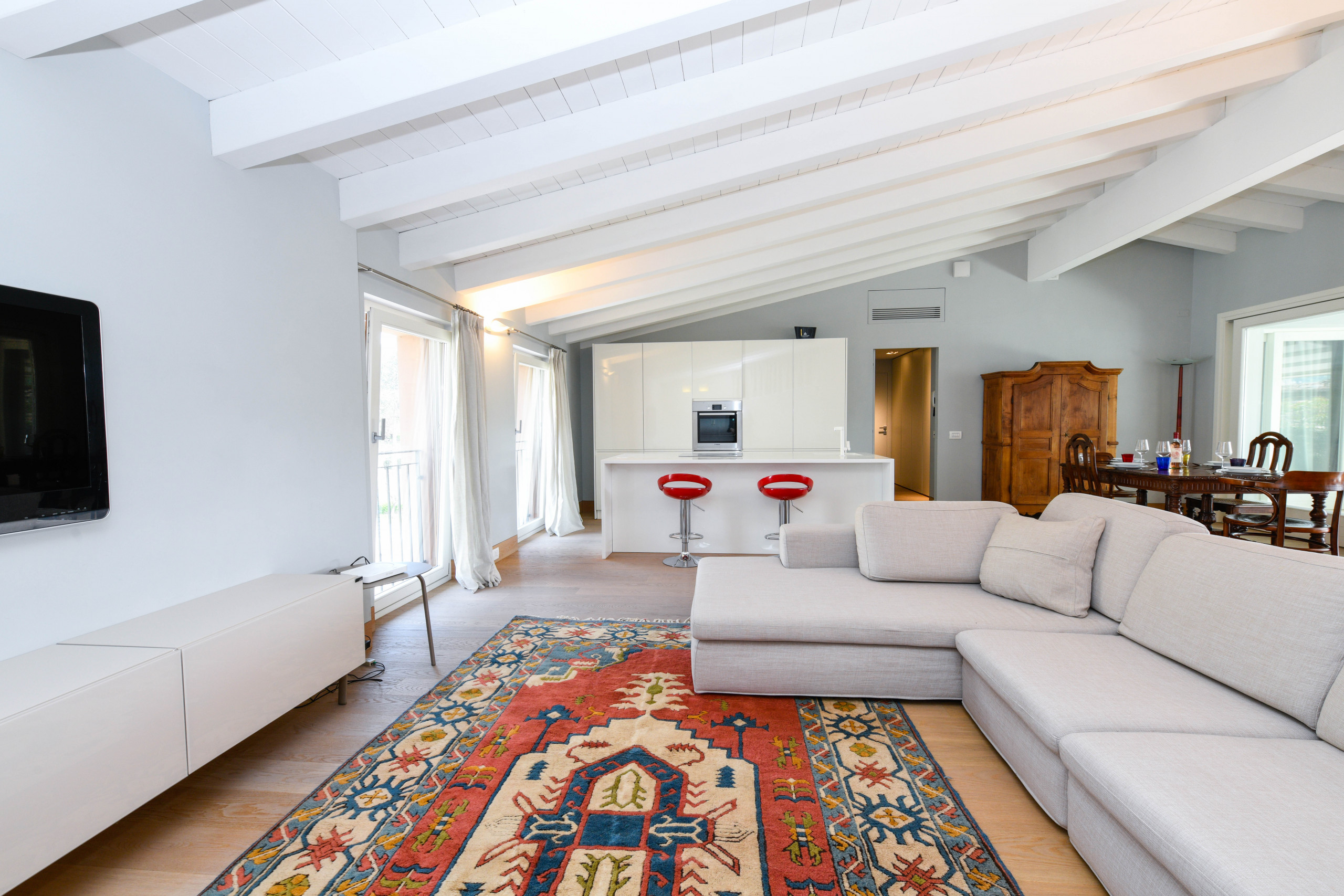 The loft boasts air conditioning, individual gas heating and free WiFi. Guests can also enjoy a convenient private parking nearby and relax on a splendid solarium terrace with a lake view.