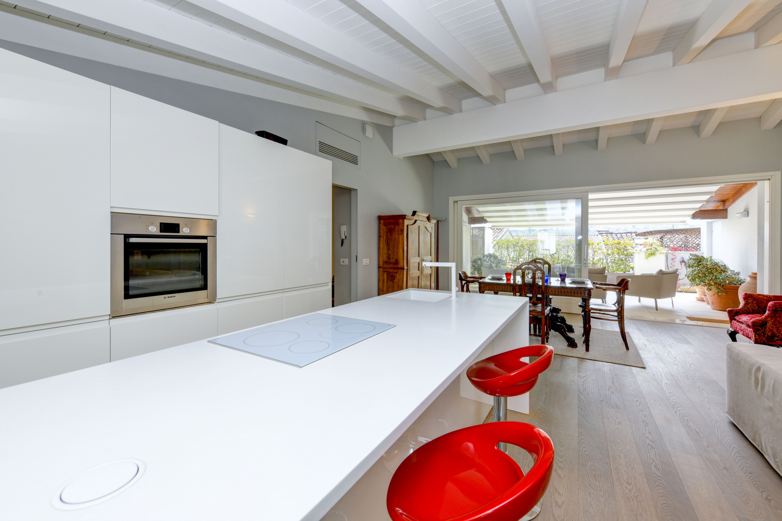 The fully equipped kitchen is equipped with all modern comforts: refrigerator, washing machine, coffee machine, oven, dishwasher, toaster and much more. The American-style kitchen environment allows you to prepare delicious meals and share convivial moments.