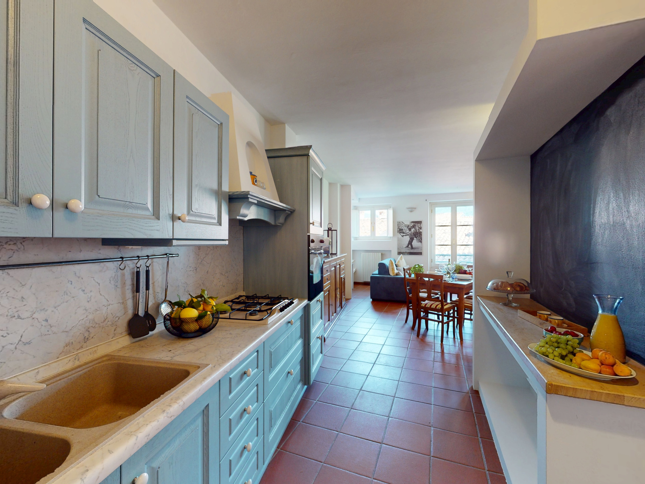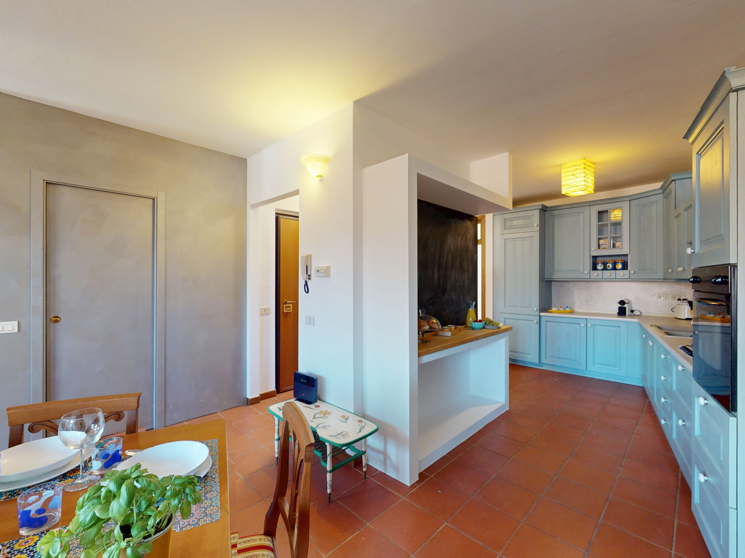 On the first level, a spacious living area with a bright and welcoming atmosphere awaits you, with a fully equipped kitchen: perfect for preparing family lunches or dinners with friends.