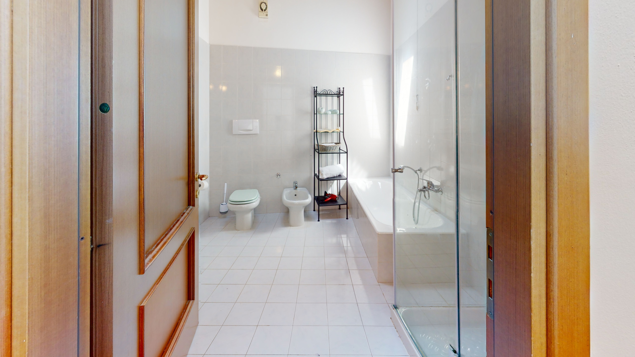 The upstairs bathroom, elegant and well-finished, features both a bathtub and a shower, to enjoy a regenerating break.