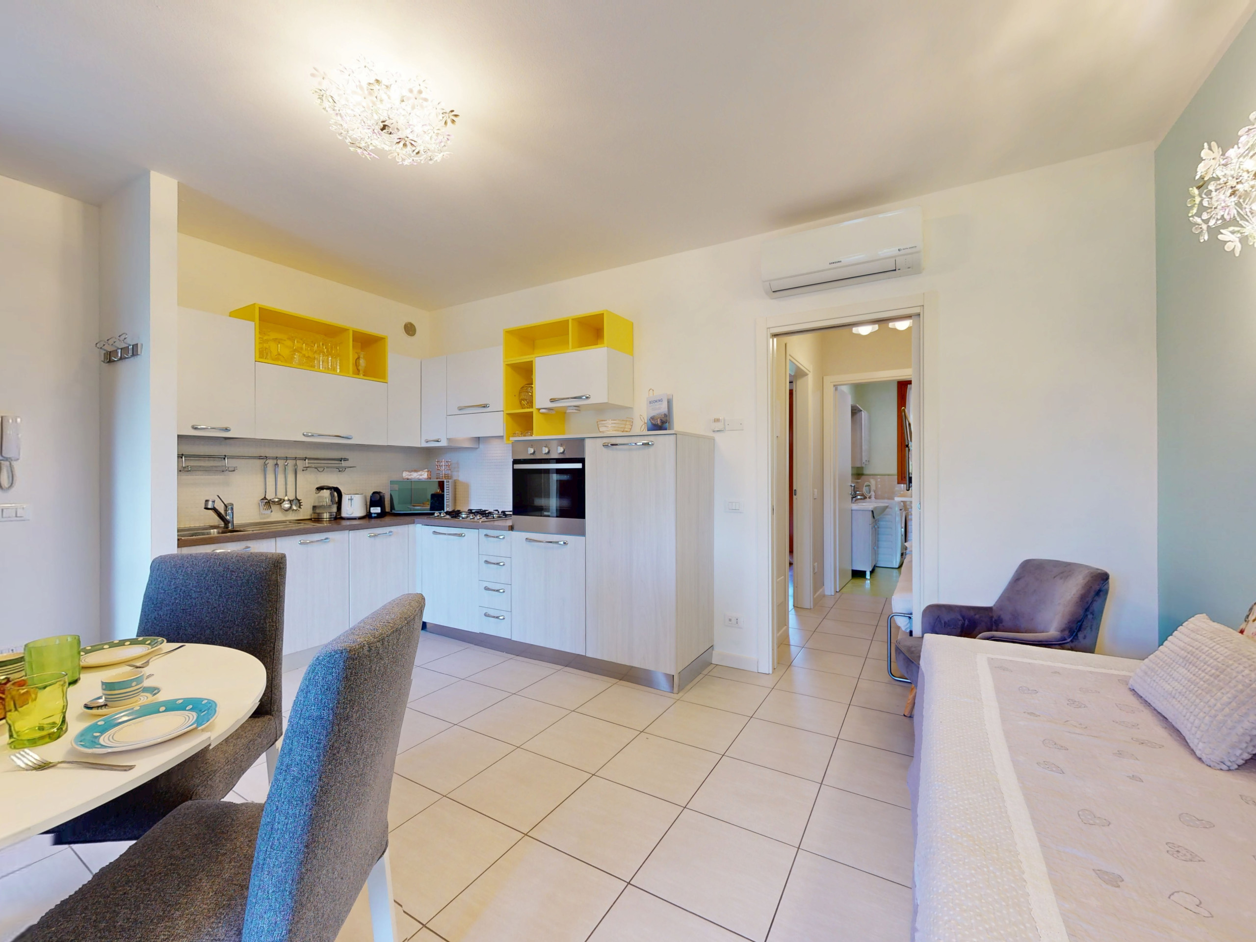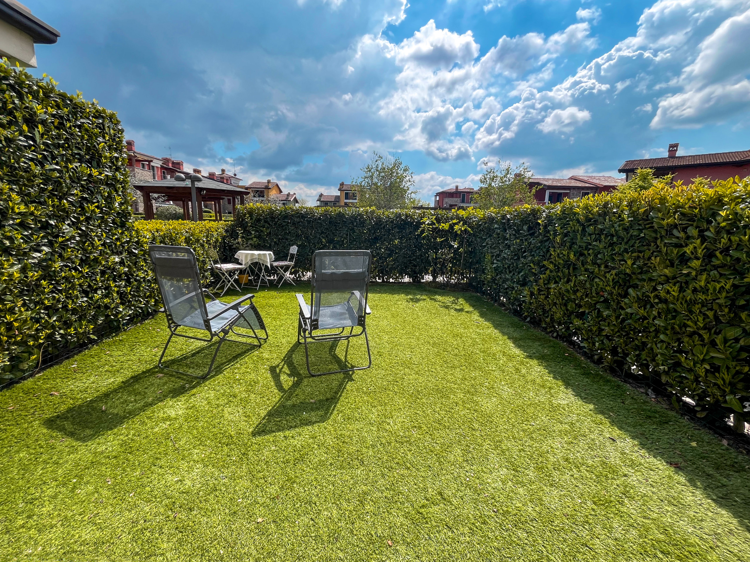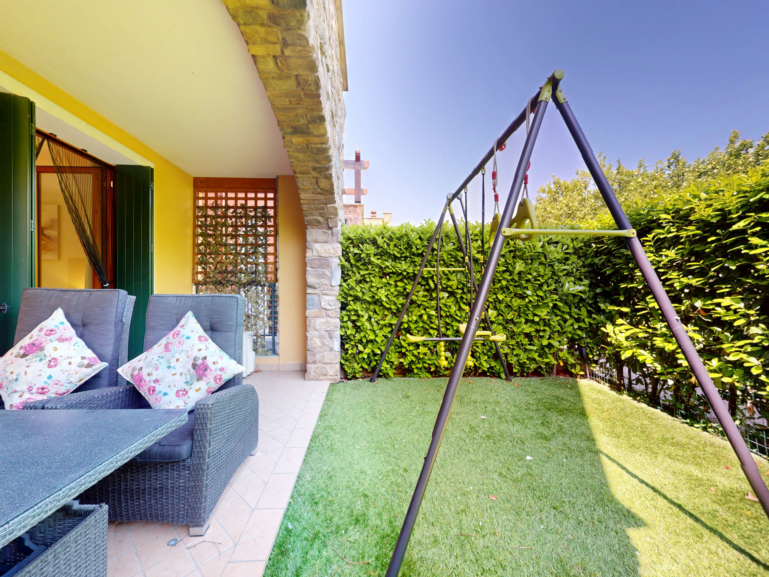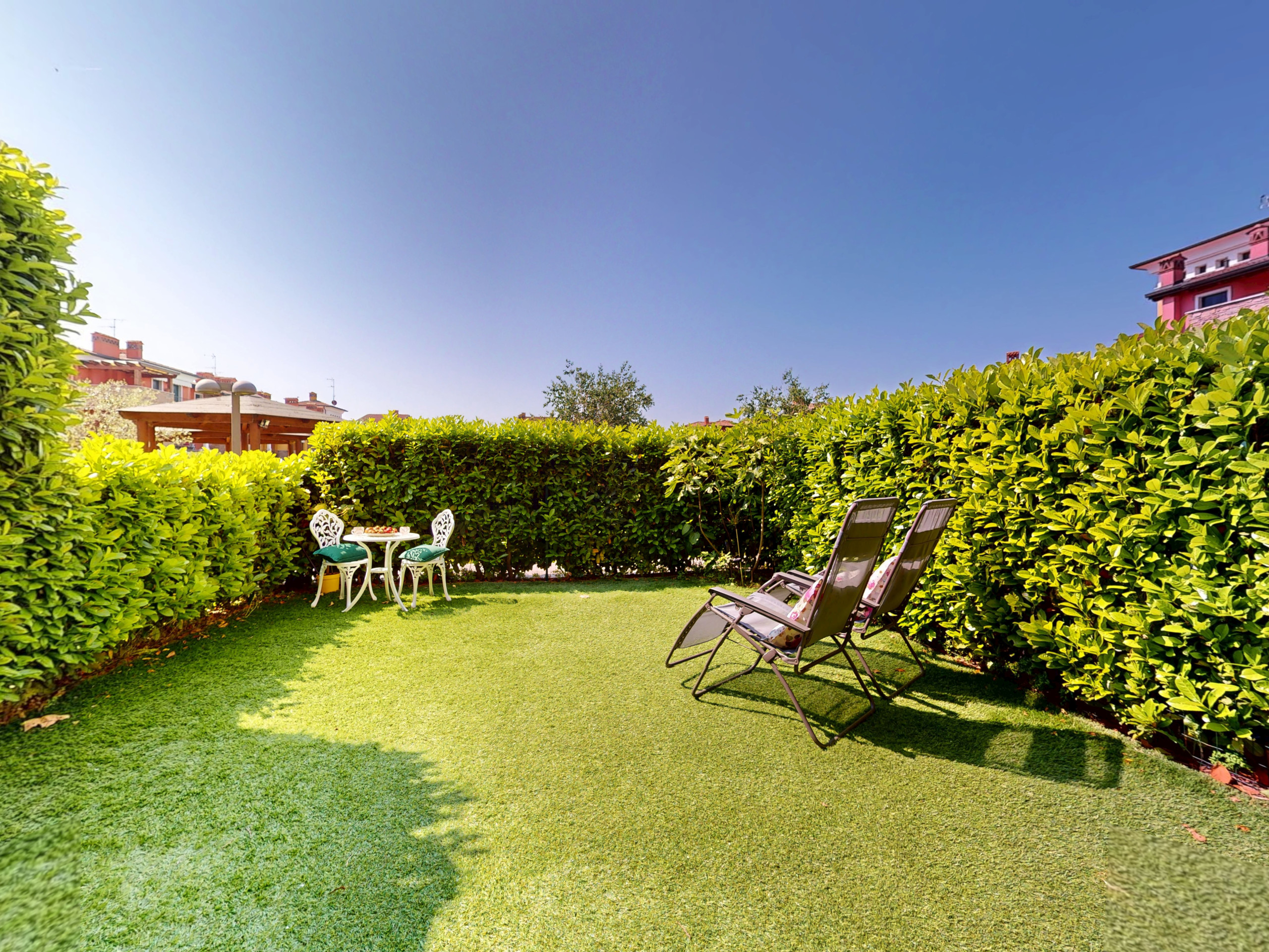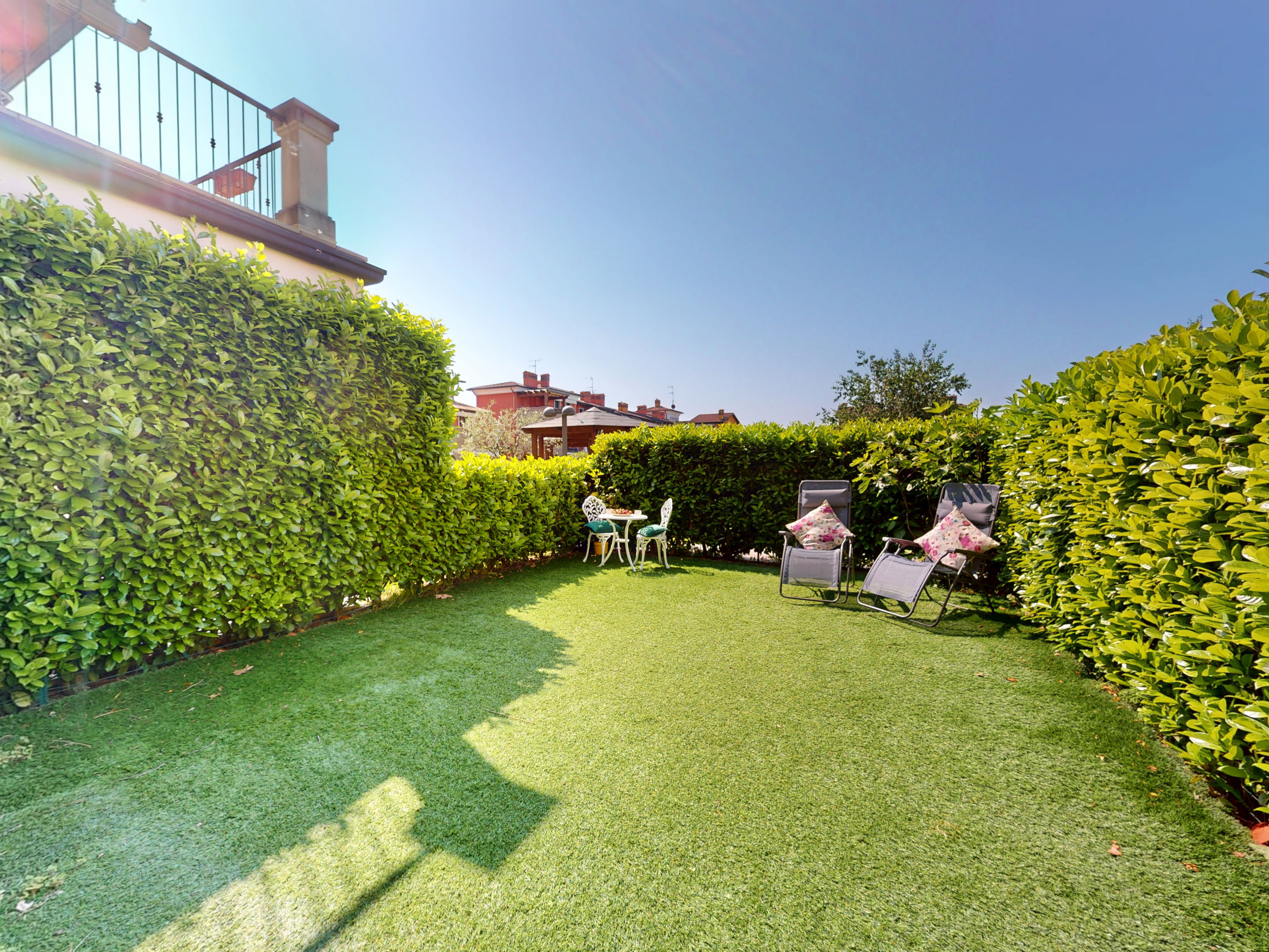 Die Wohnung liegt in einer sehr ruhigen Residence. Es sind überwiegend die italienischen Eigentümer die hier Urlaub machen, dadurch ist es sehr ruhig. Mit Hund ideal, da ein kleiner Garten vorne und hinten raus ist. Der Rasen ist ein Kunstrasen.