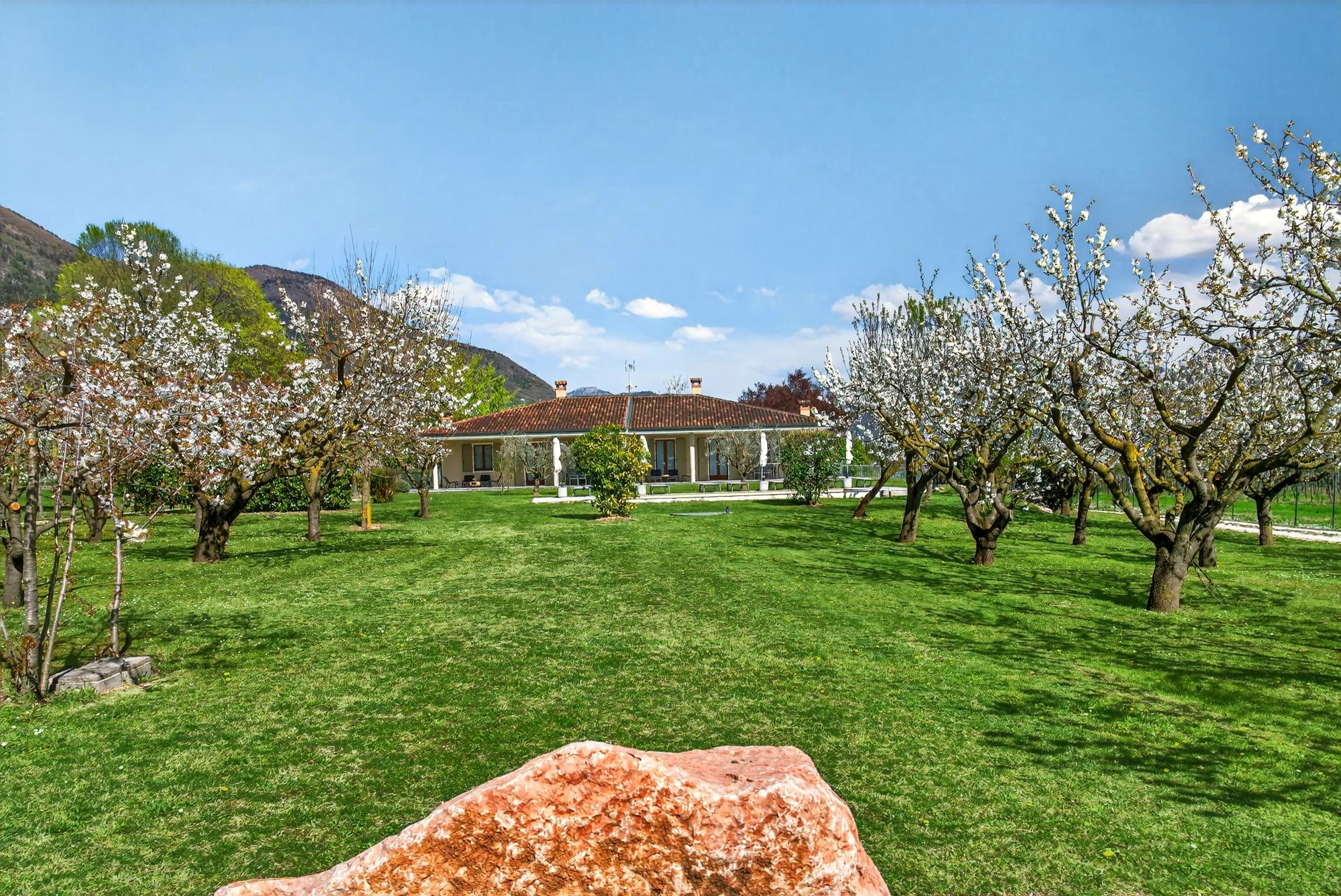 The Rodole apartment, entirely located on the ground floor, has a large double bedroom with wardrobe, a room with two single beds that can be joined, an additional single bed and a pull-out single bed, small bathroom with shower, main windowed bathroom with laundry area with washing machine, shower box, double sink. The spacious kitchen overlooking the side terrace equipped with table and chairs has a modern kitchen with dishwasher, gas hob, microwave, large refrigerator with freezer, American-style breakfast counter, coffee corner with German coffee machine and coffee machine with pods. The living area with a splendid decorative marble fireplace (not usable), opens onto the covered terrace with lounge area and offers a pleasant view of the garden and pool. It has a sofa, armchair, satellite TV, large dining table.