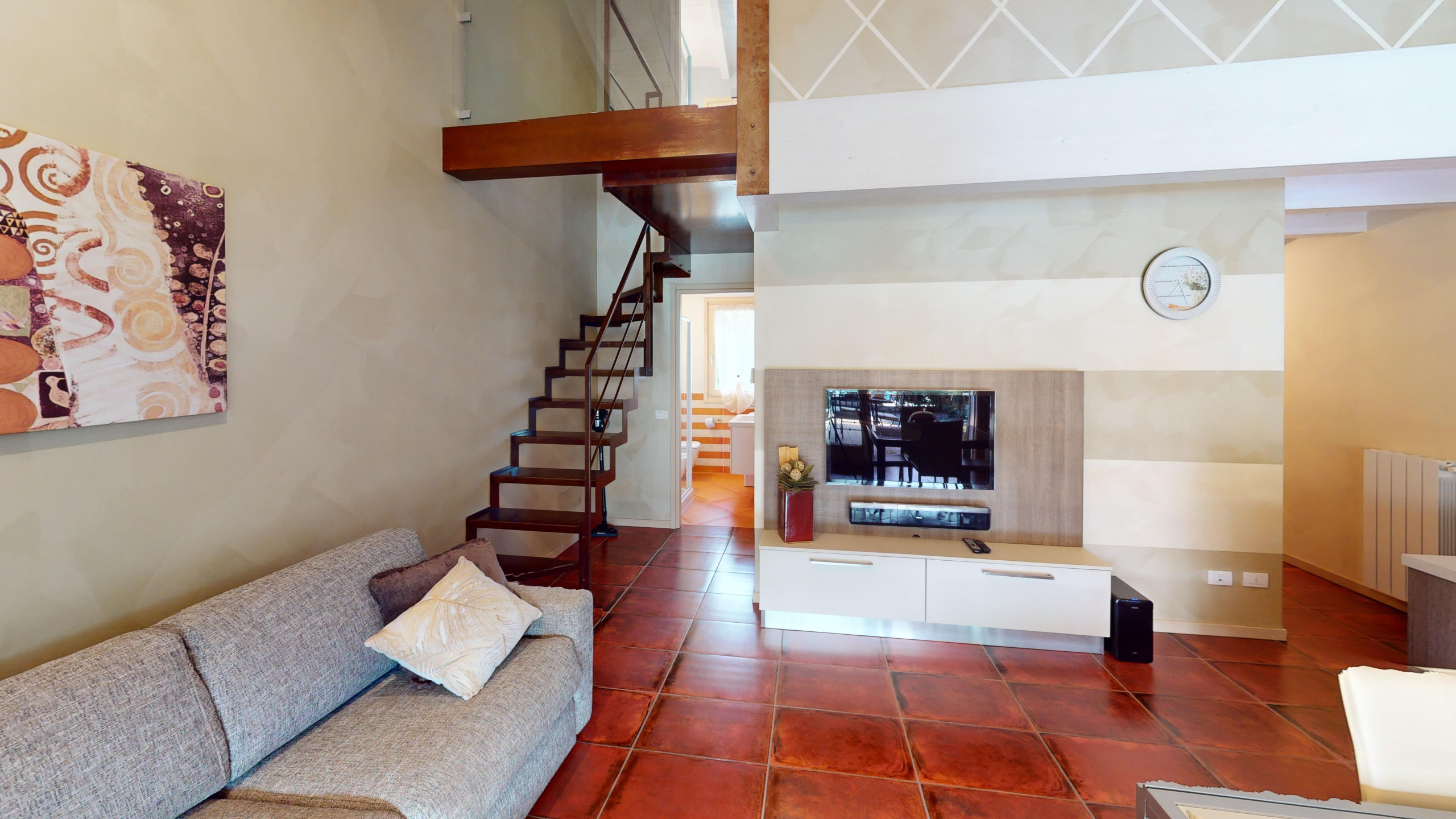 On the ground floor, a spacious living area invites you to relax between natural light and carefully designed spaces, with direct access to the external porch: here the barbecue fireplace, the large table, and the view of the pool create the ideal atmosphere for outdoor lunches and evenings under the stars. The fenced garden, equipped with a table and loungers, is the perfect place to enjoy relaxation between nature and privacy.