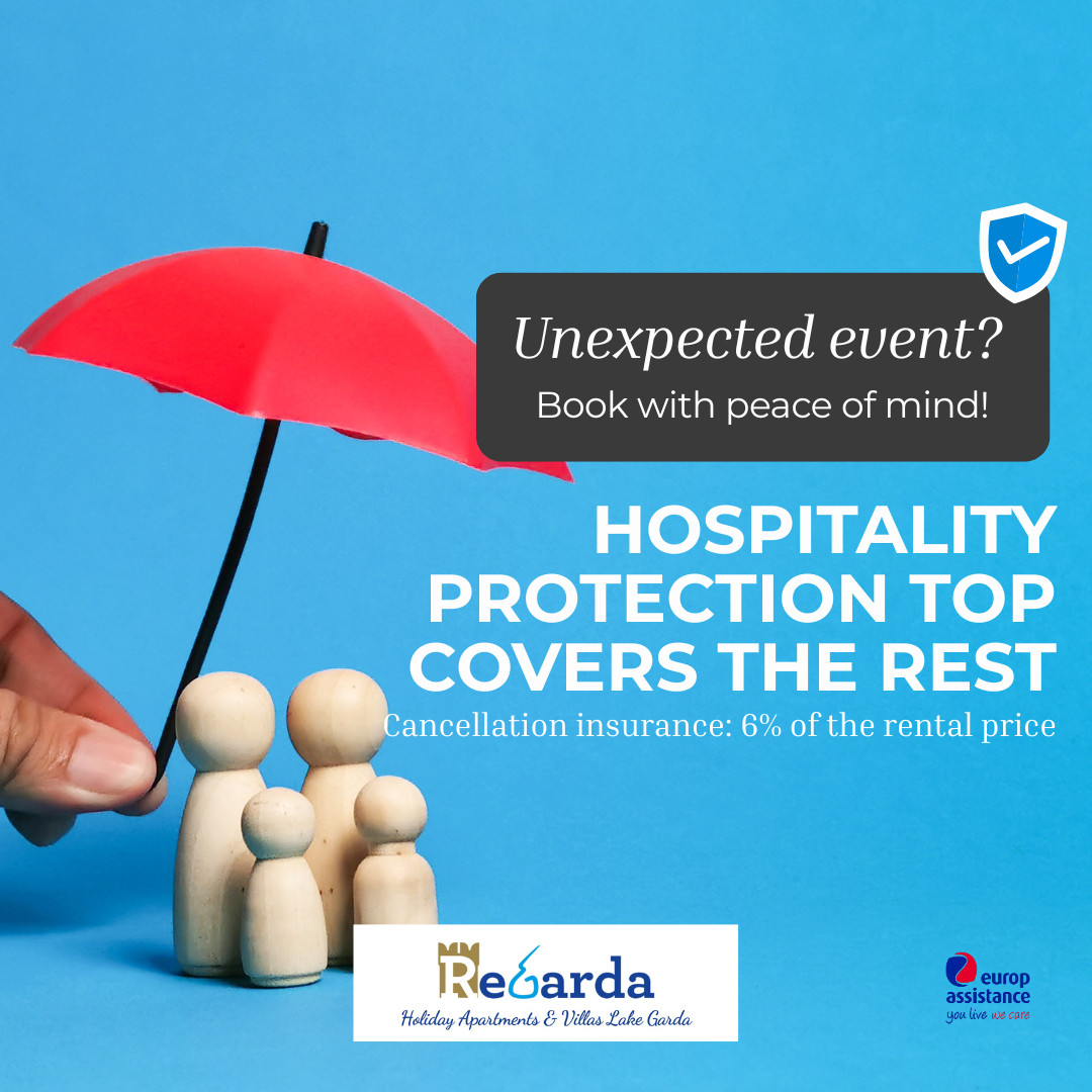 The coverage protects you in situations such as sudden illness or injury—affecting either you or other members of your travel group—as well as hospitalization or bereavement. By choosing this protection, you can plan your Lake Garda holiday with the peace of mind that your money is safe should the unexpected happen.