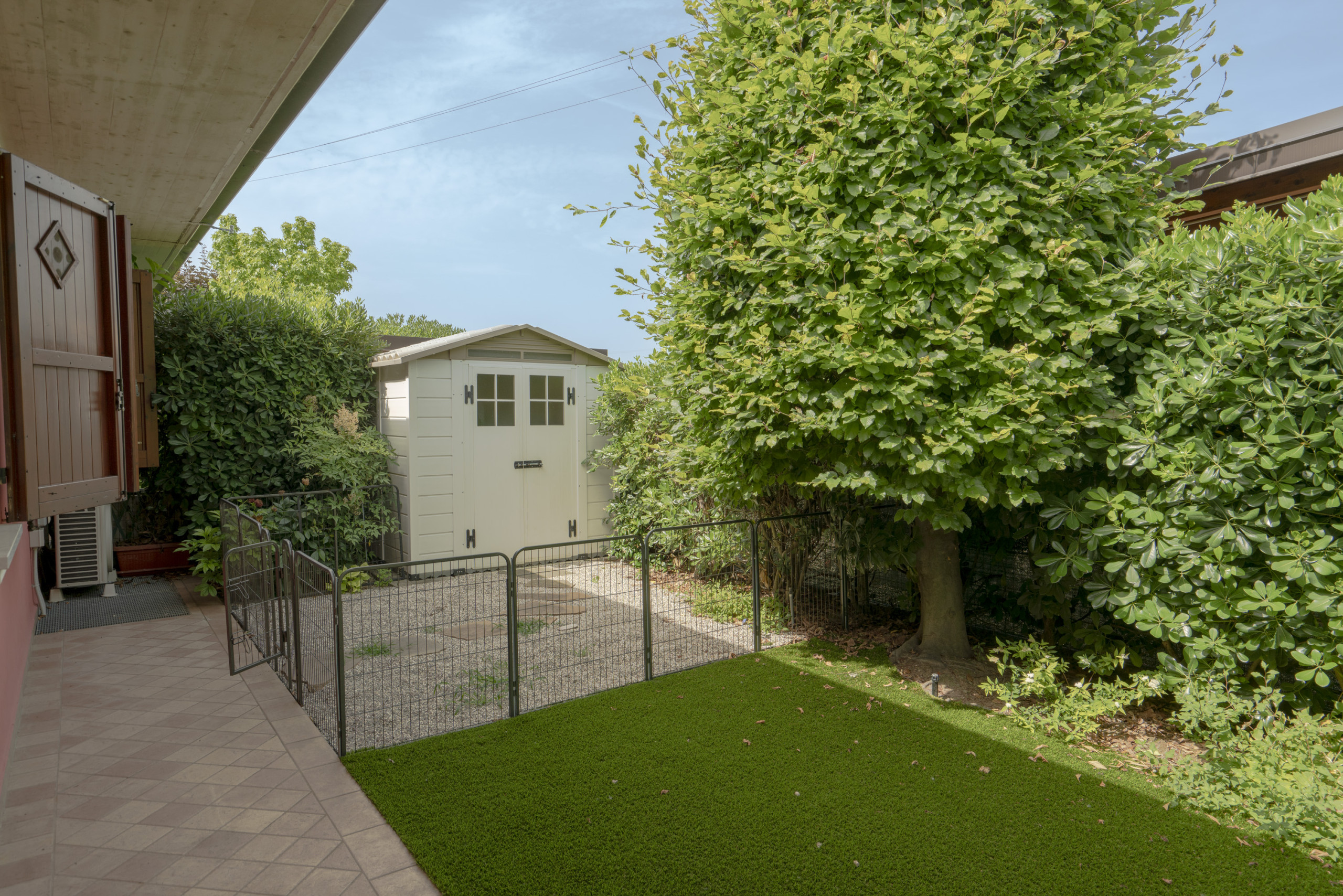 The outdoor areas are particularly well-kept, with a fenced garden of 150 square meters of synthetic grass and furnished with garden furniture, perfect for moments of relaxation outdoors. The property is pet-friendly, allowing up to two pets, and has two private parking spaces outside.