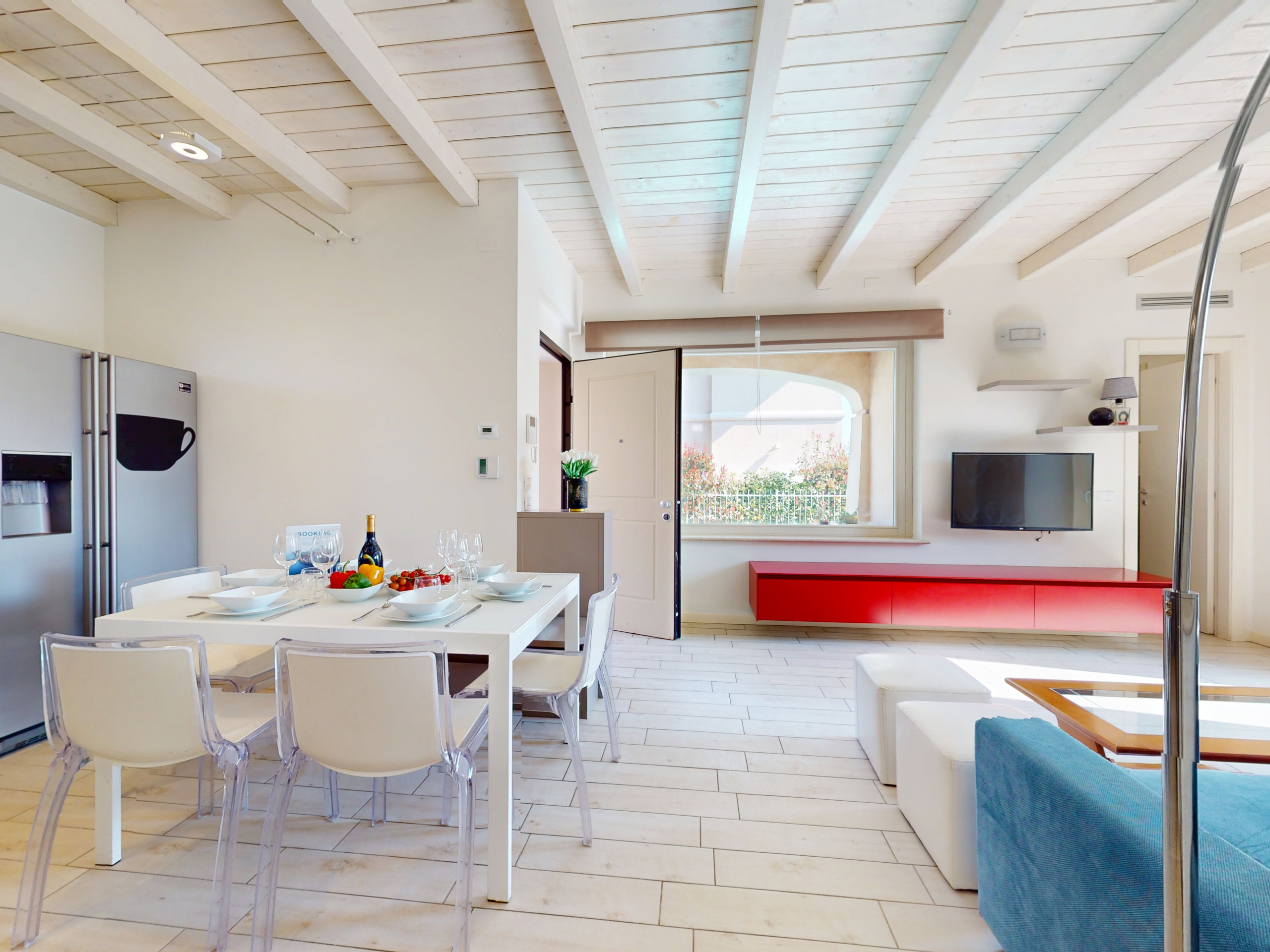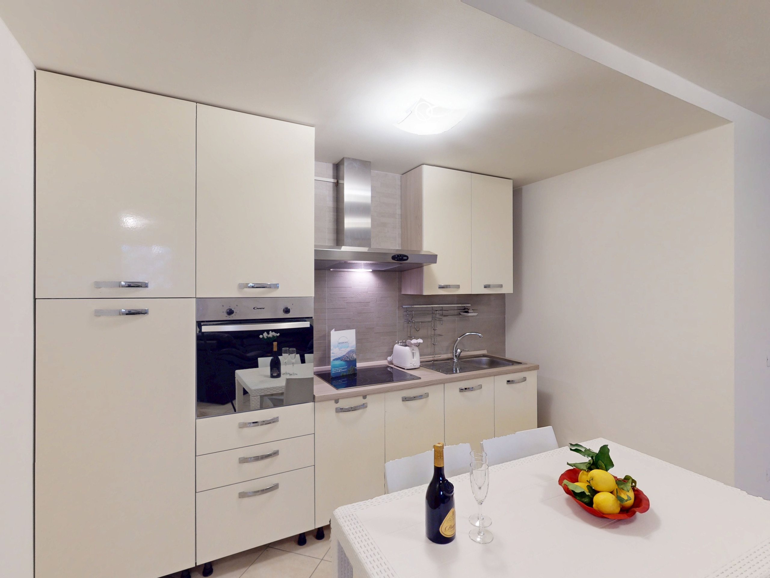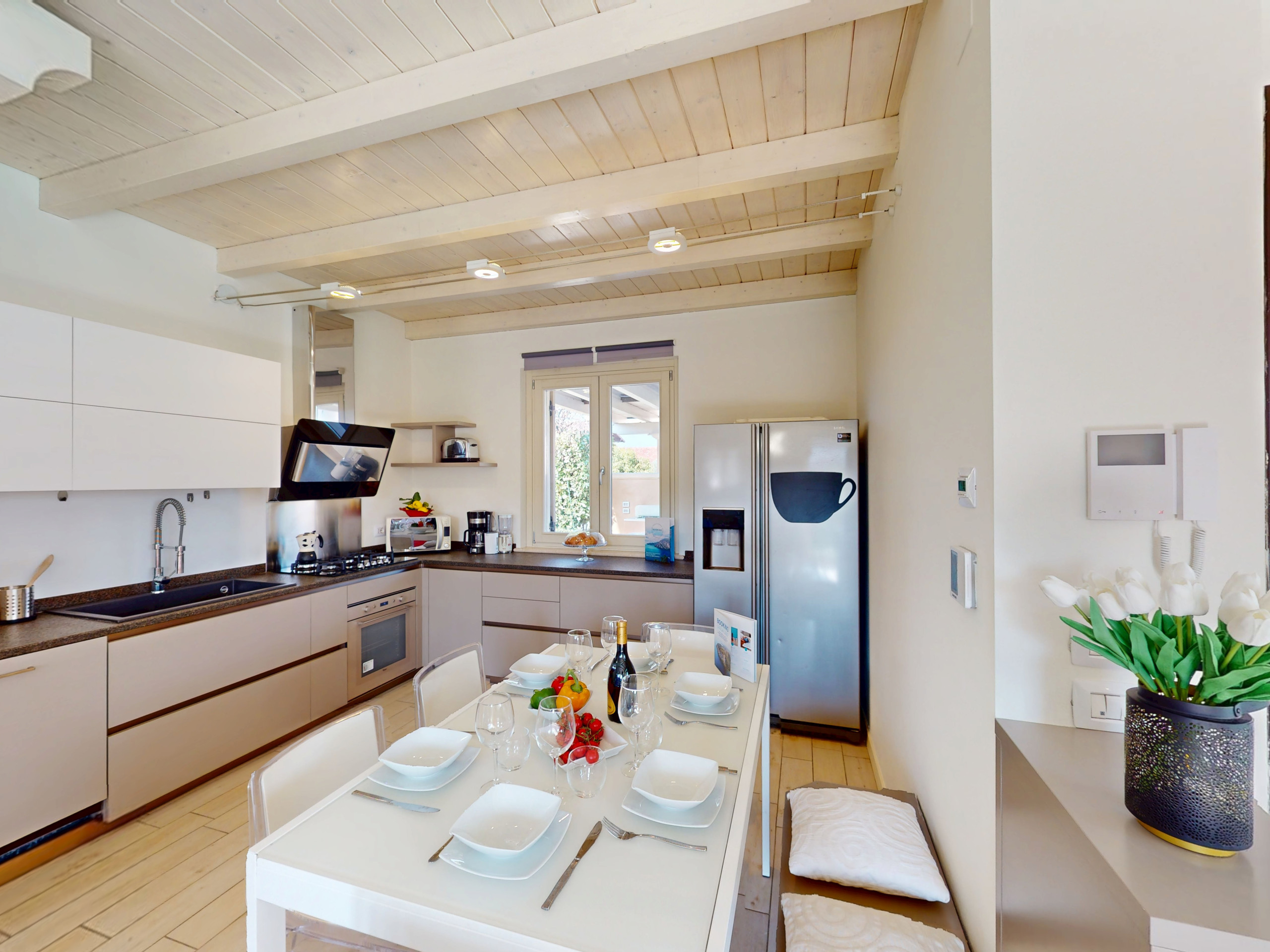 The kitchen, fully equipped with a dishwasher and separated from the rest of the living area, is perfect for those who love to cook even on holiday.