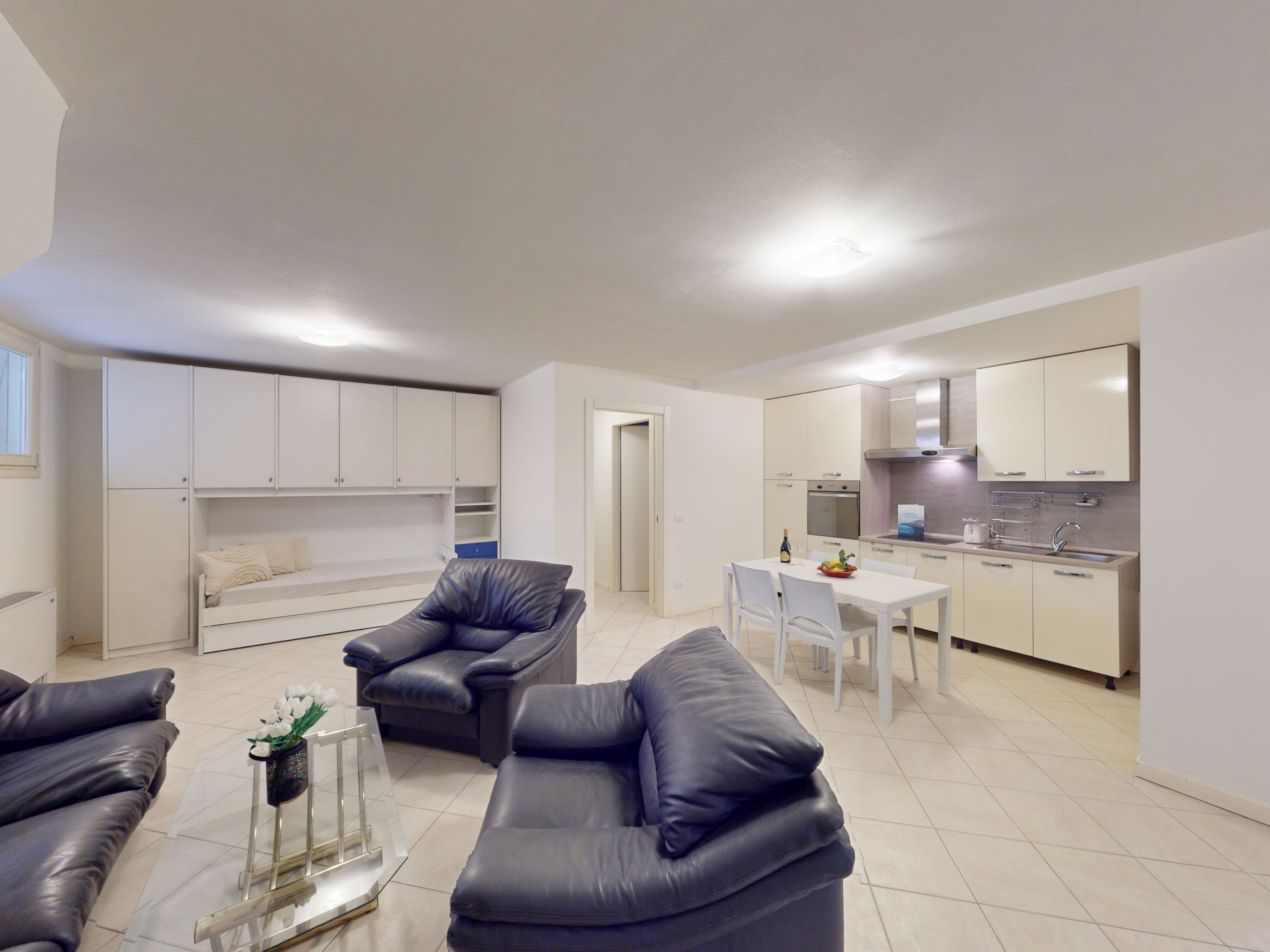 Two shower rooms, one of which in the basement with a washing machine, guarantee all the space and convenience you need, even for extended stays.