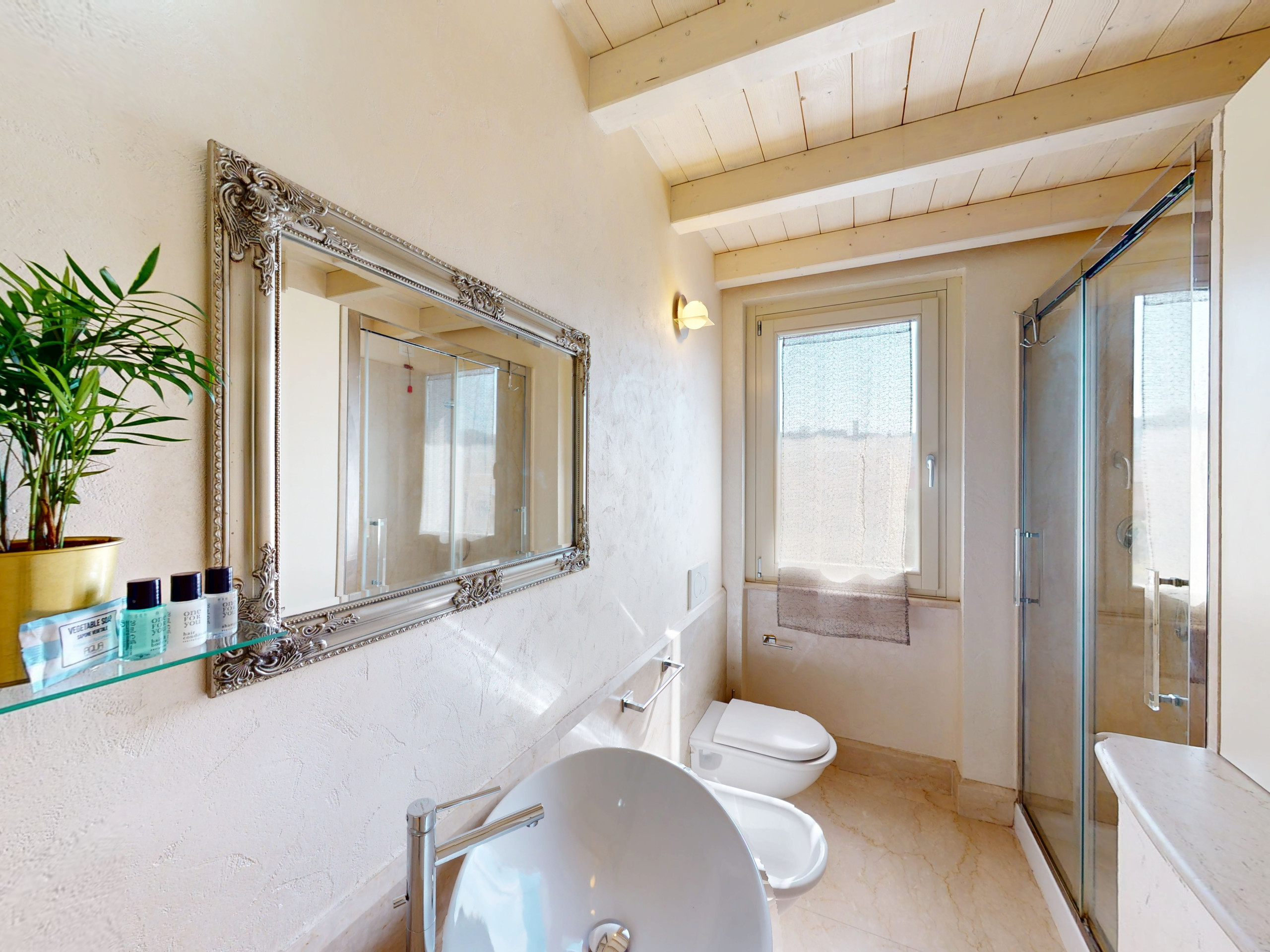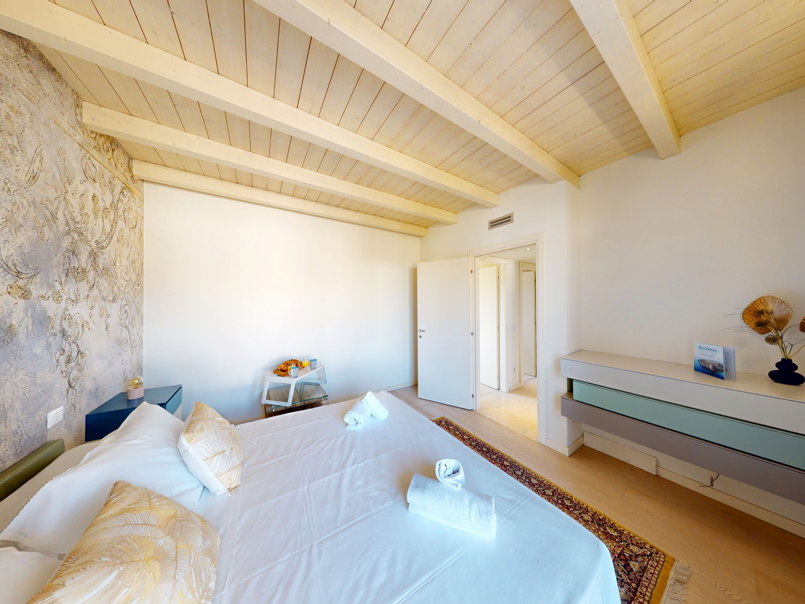 The heart of the house is the large external porch: furnished, spacious, overlooking a garden with direct access to the beach. A magical place to enjoy breakfast in the morning, relax at sunset or dine under the stars, immersed in the natural beauty of the most prestigious area of Lake Garda.