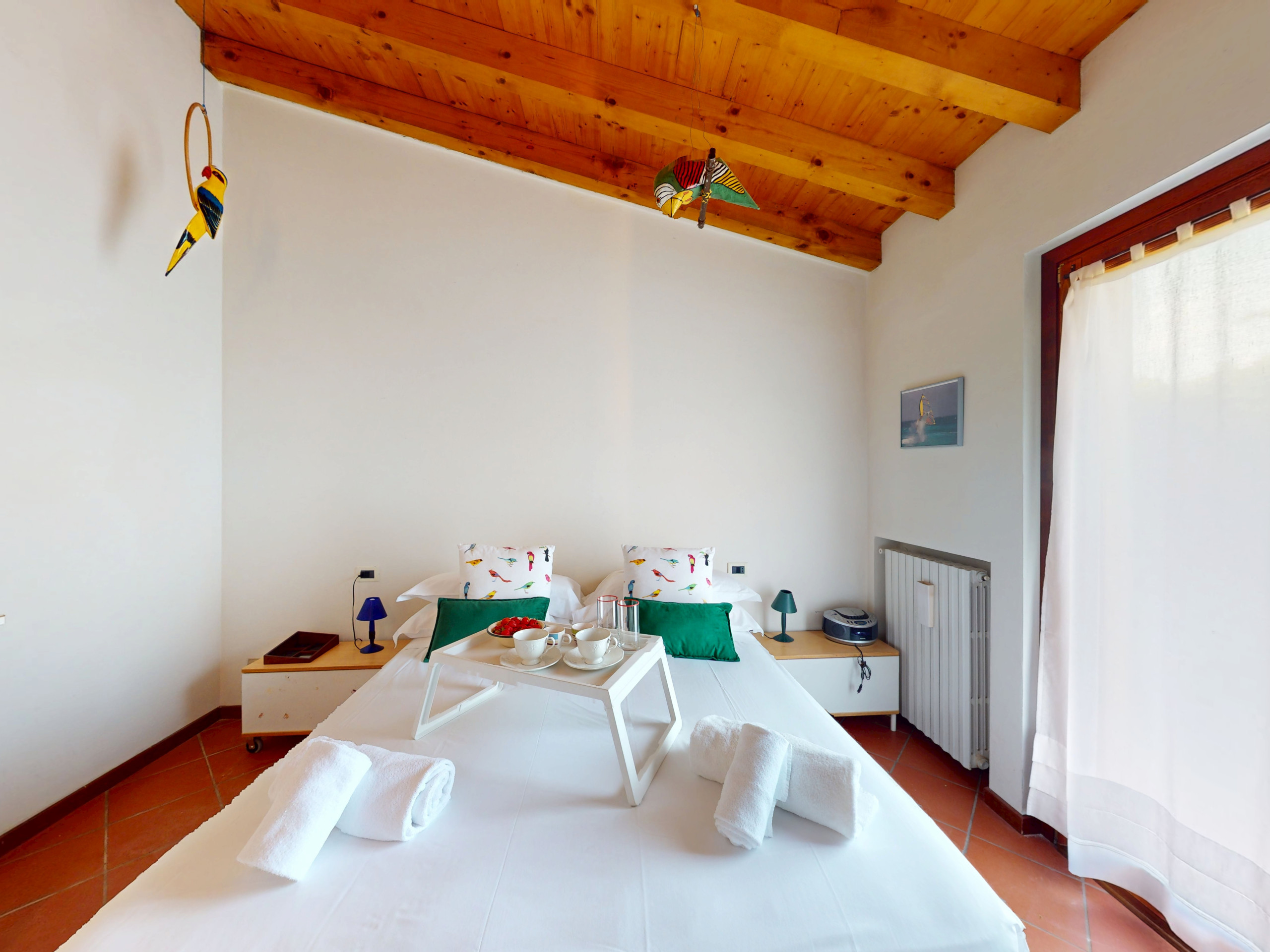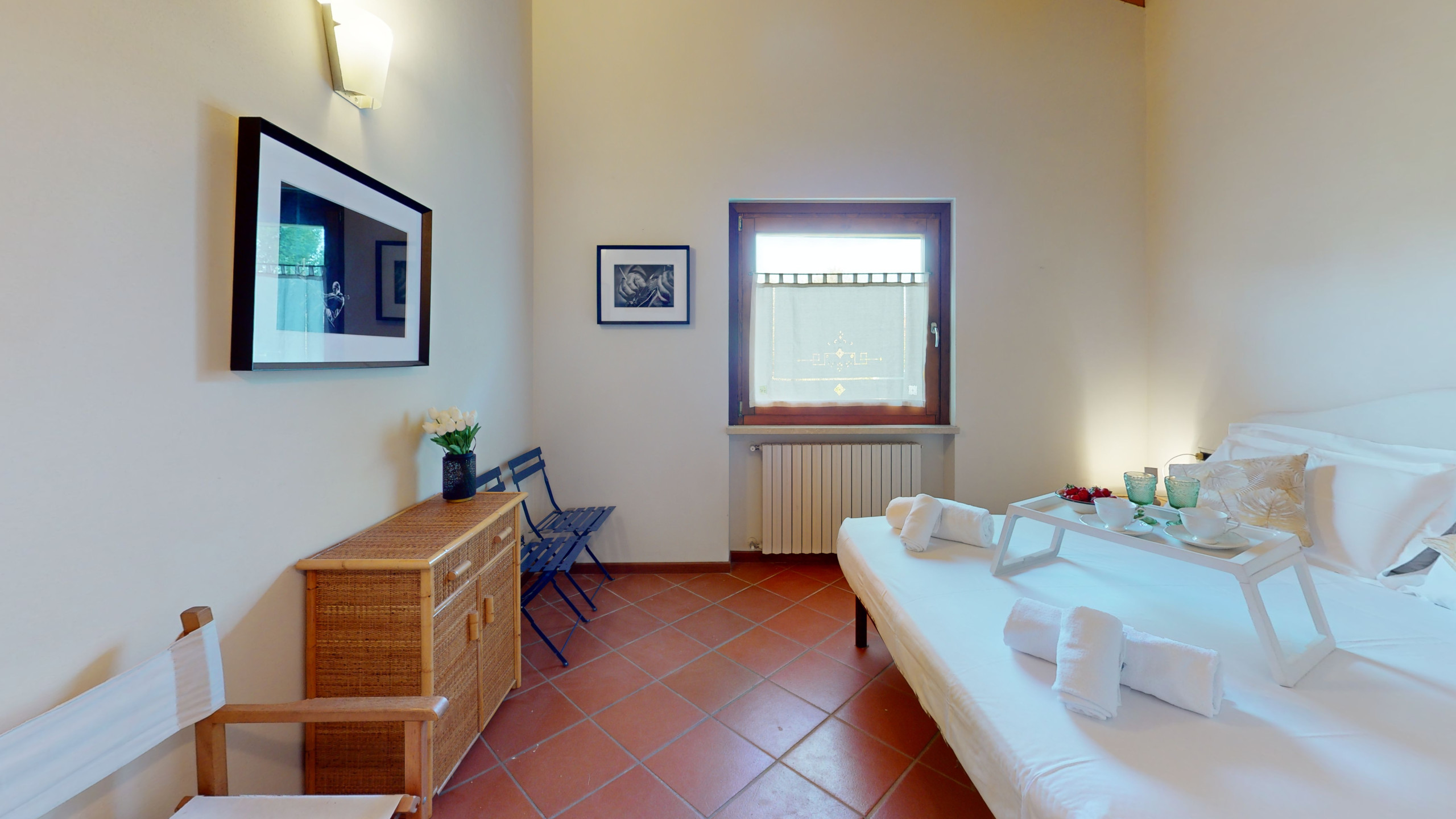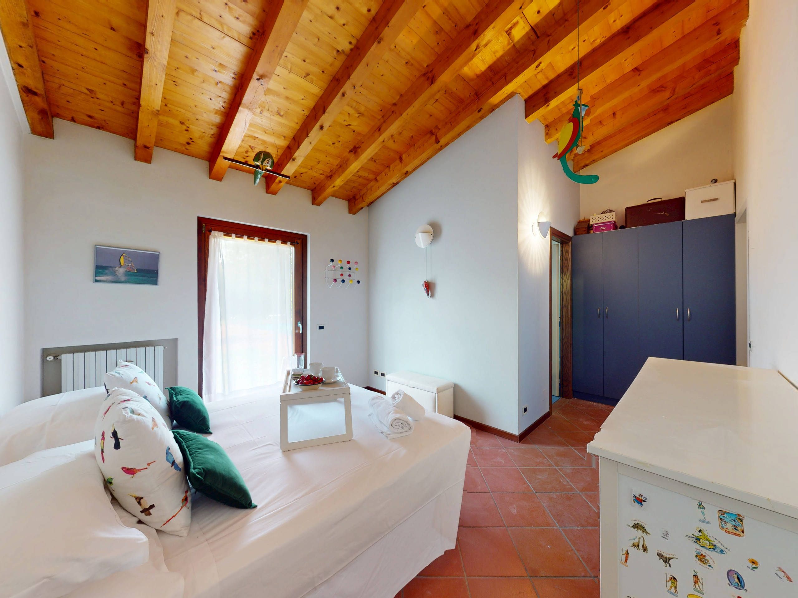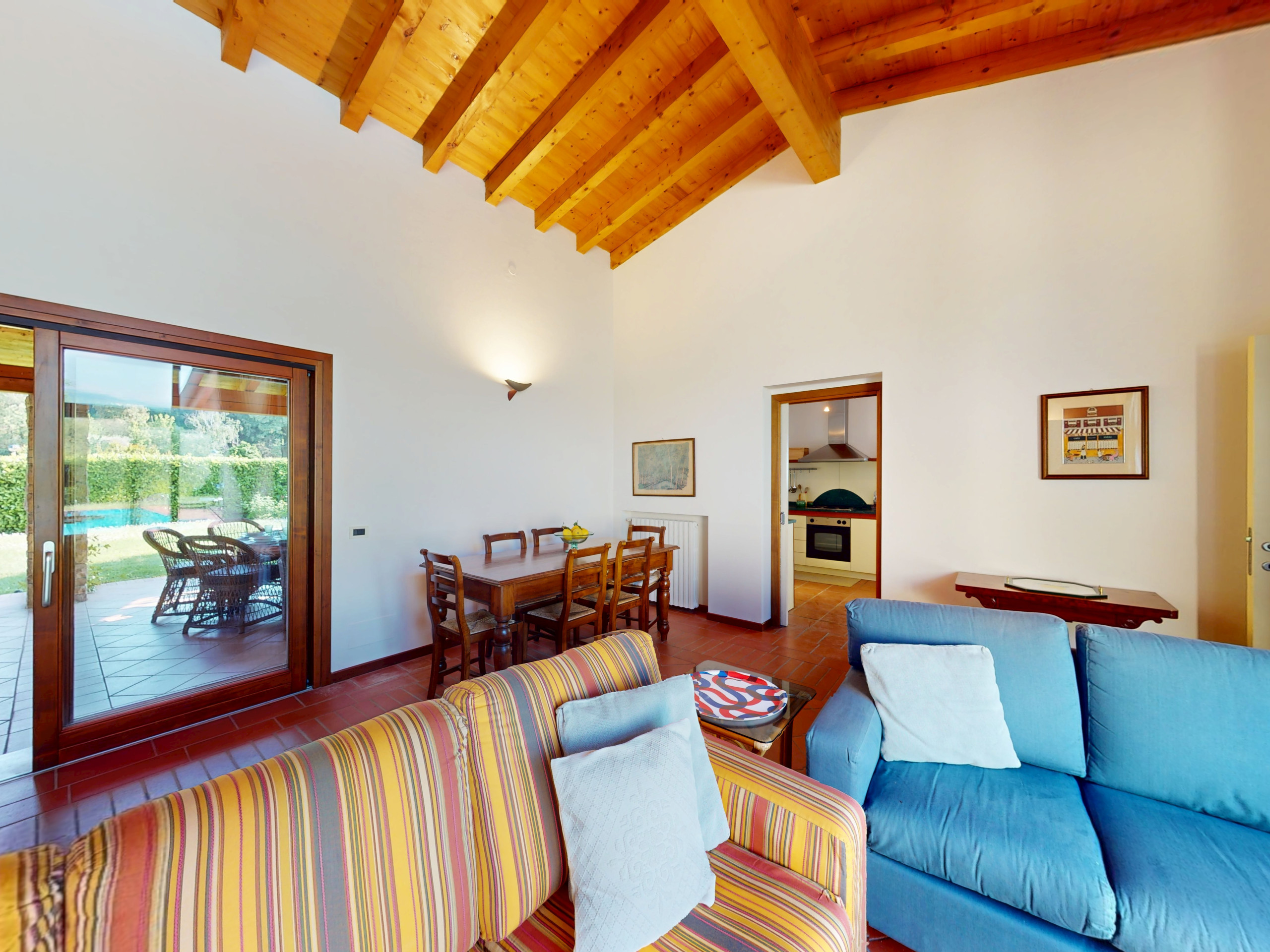 All on one level, the house opens onto large and bright rooms, embellished with high ceilings with exposed wooden beams that tell the most authentic Italian architectural tradition.