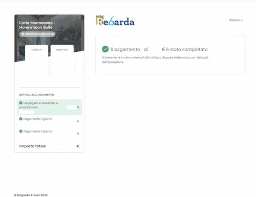 Ti invitiamo a contattare immediatamente la nostra assistenza via e-mail all'indirizzo reservation@regarda.it